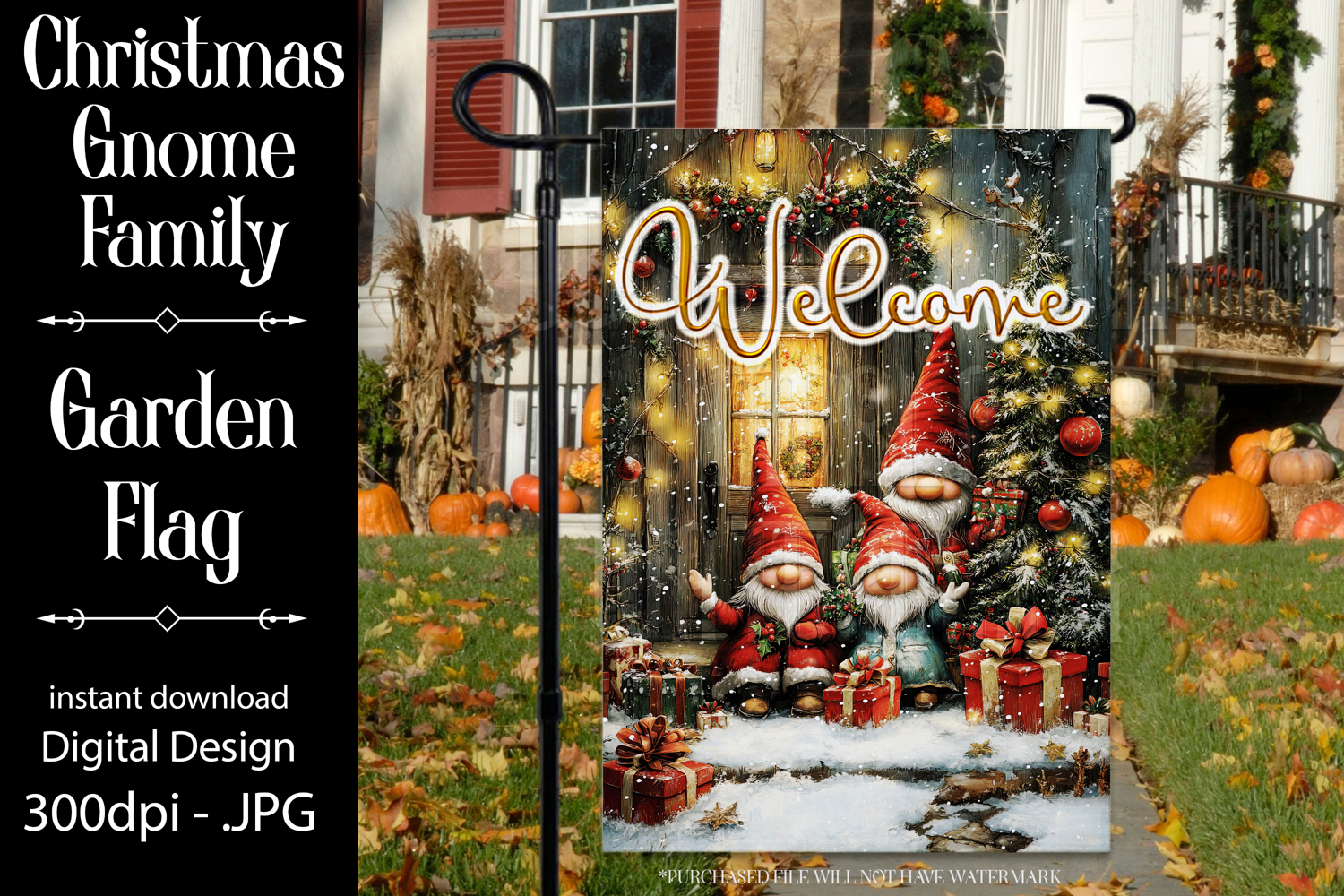 Christmas Gnome Family Garden Flag, Gnome Garden Flag, d10 example image 1