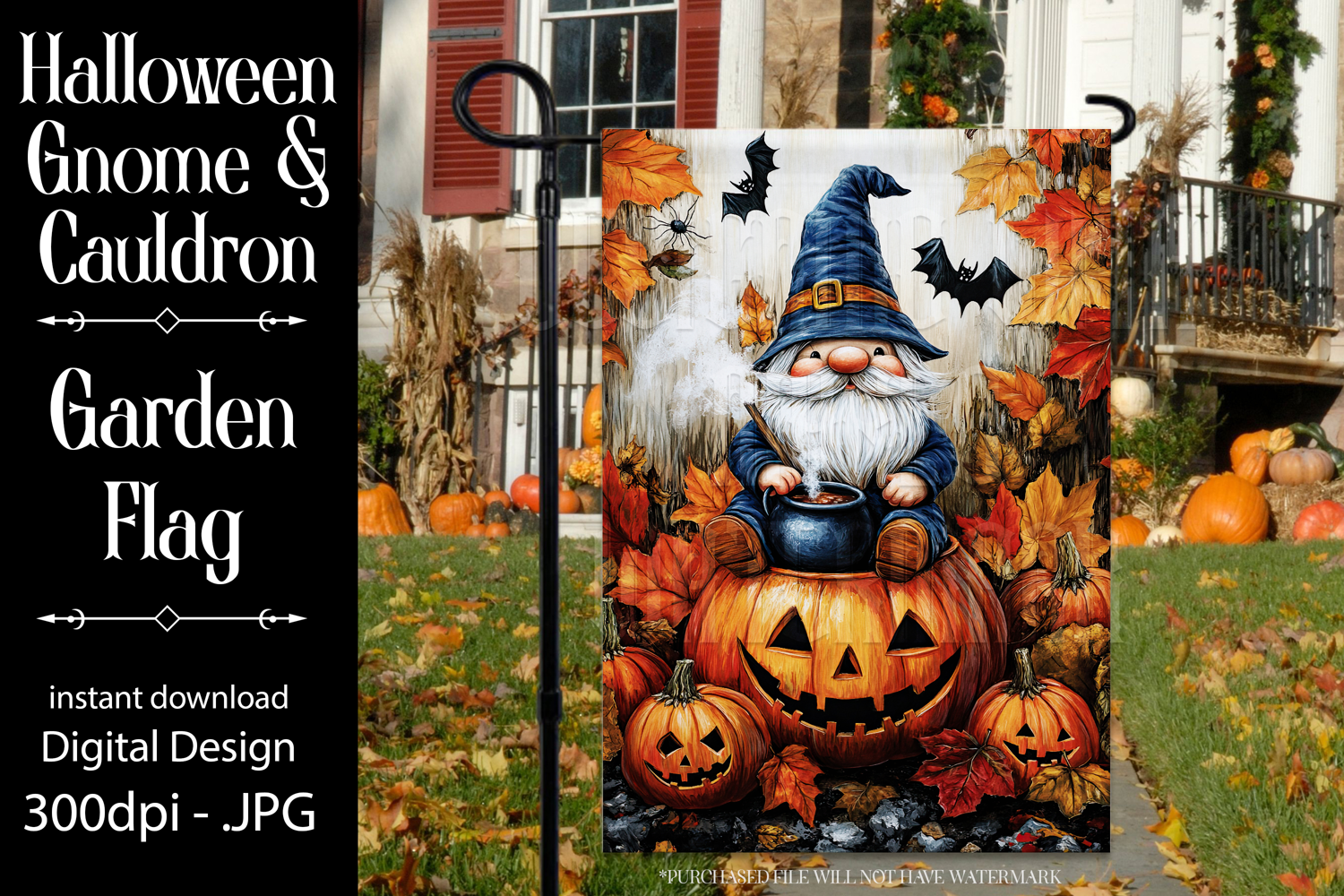 Halloween Gnome Garden Flag, Cauldron, Jack o Lantern, d8 example image 1