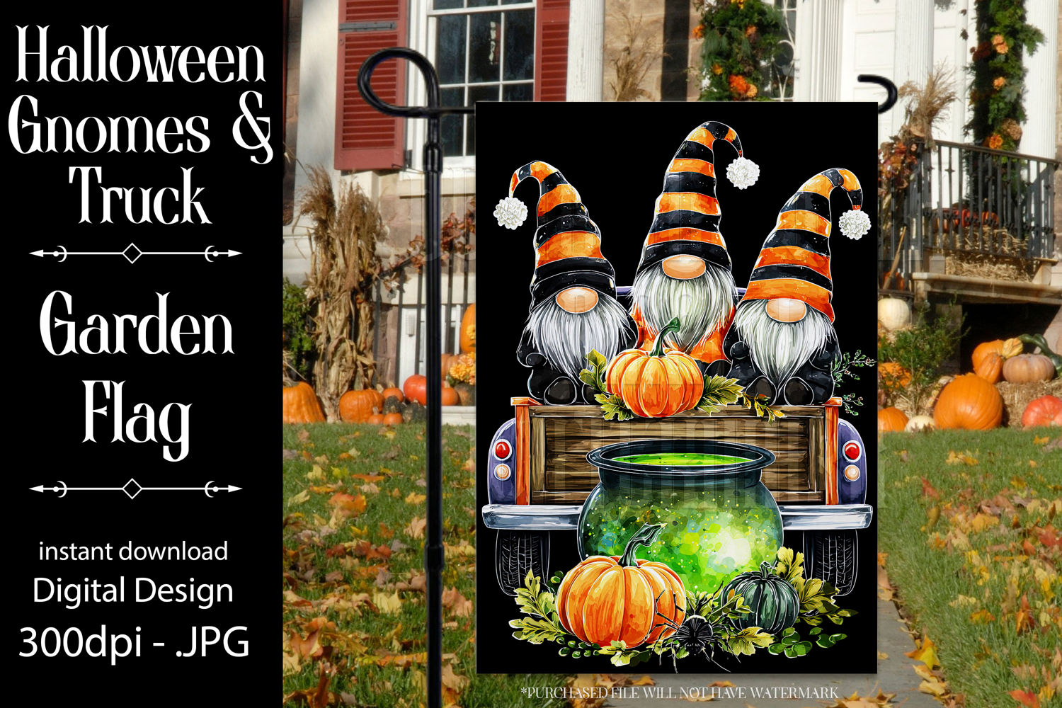 Halloween Gnome Garden Flag, Gnomes in Pickup Truck, d3 example image 1