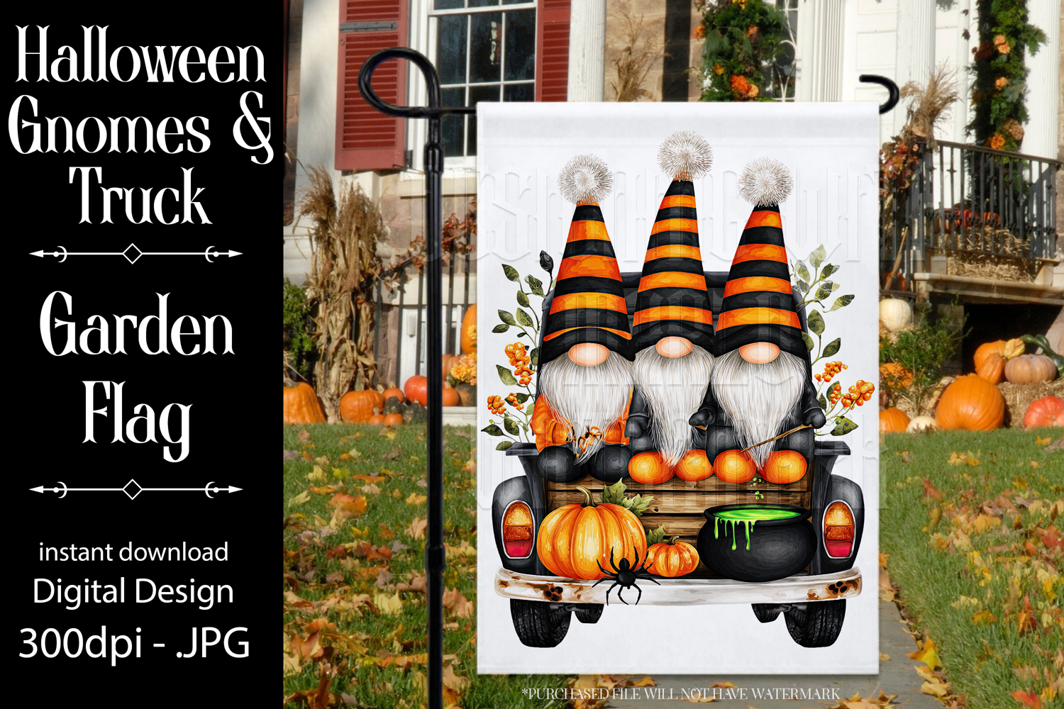 Halloween Gnome Garden Flag, Gnomes in Pickup Truck, d8