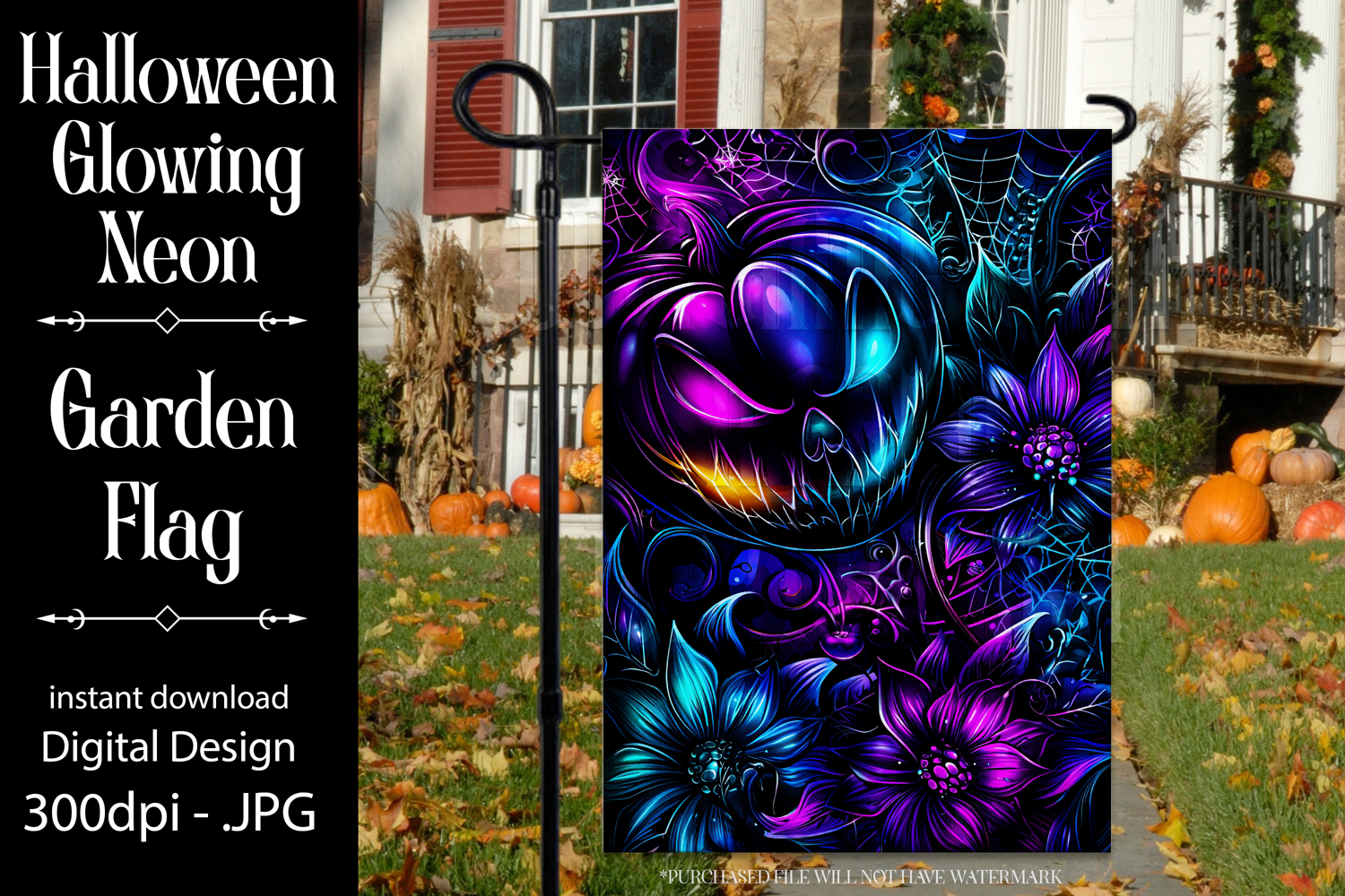 Halloween Garden Flag, Halloween Glowing Neon Garden Flag d1 example image 1