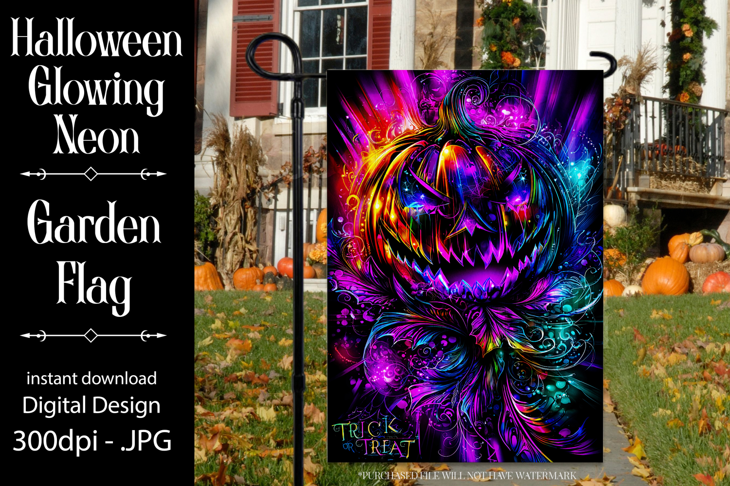 Halloween Garden Flag, Halloween Glowing Neon Garden Flag 12 example image 1