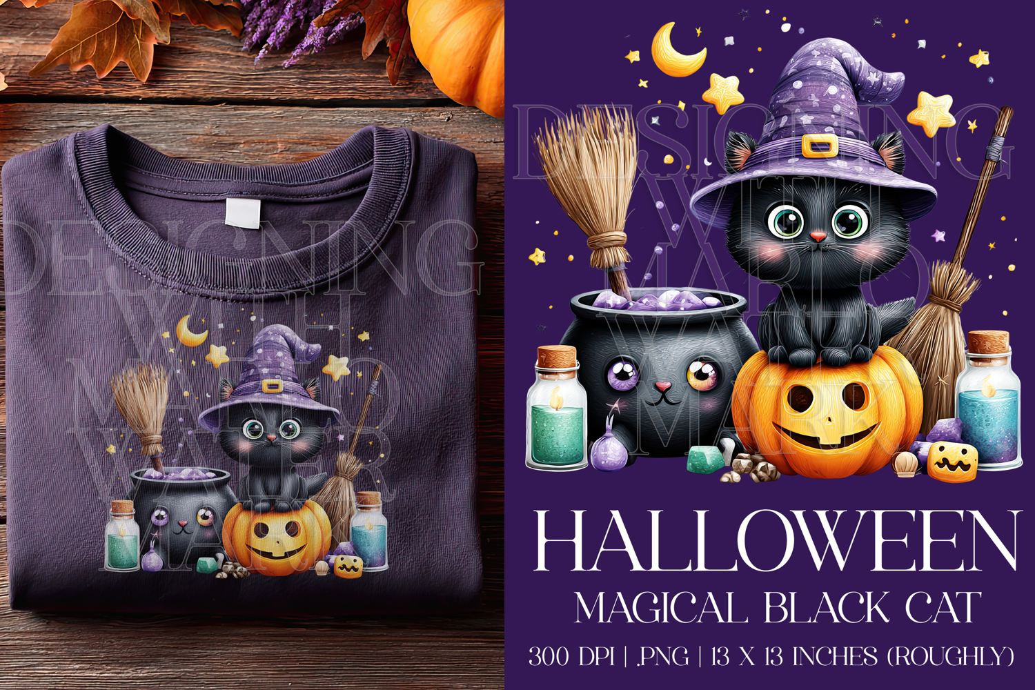 Witch Halloween Graphic Halloween Clipart Halloween Png Black Cat Png Halloween T-shirt Halloween Black Cat Sublimation Halloween Sublimation Cat Sublimation Black Cat