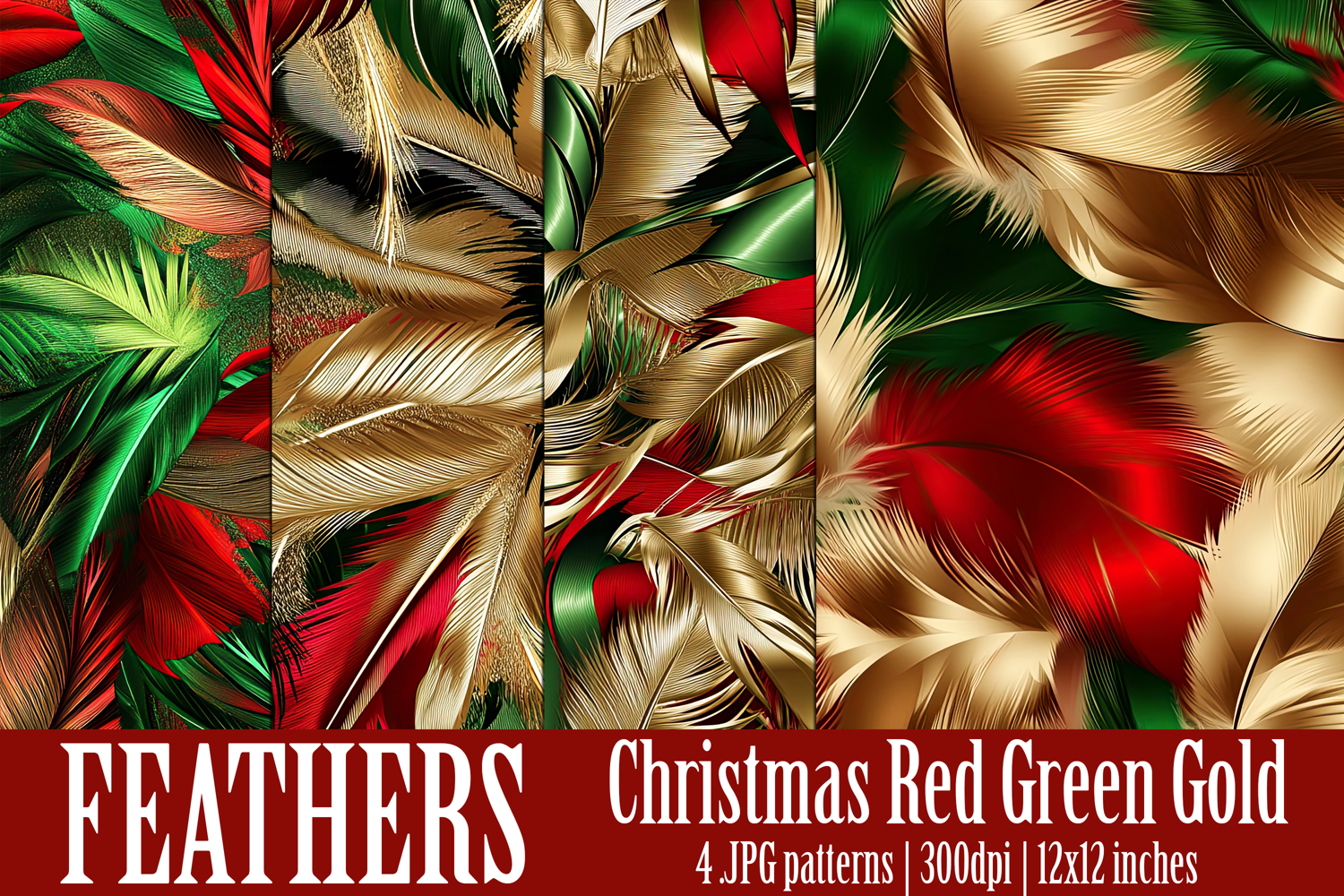 Feather Feathers Seamless Pattern Christmas Pattern Gold Feather Green Feather Red Feather Holiday Pattern Feather Pattern Seamless Christmas Pattern