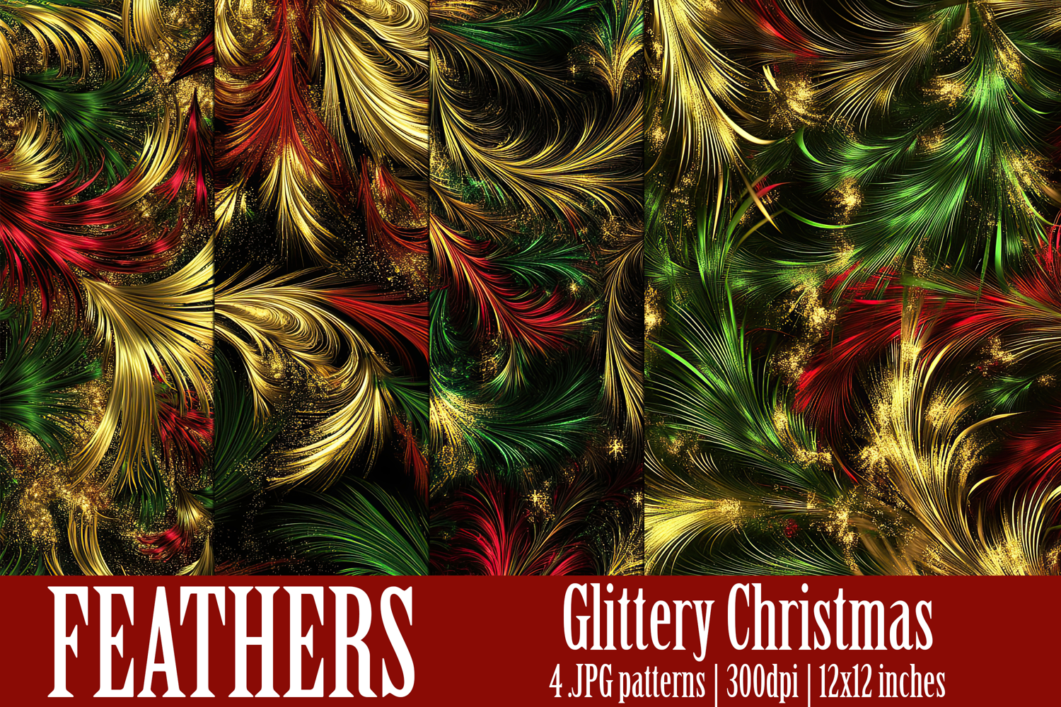 Christmas Patterns, Christmas Feathers Patterns, Sparkle, 2 example image 1