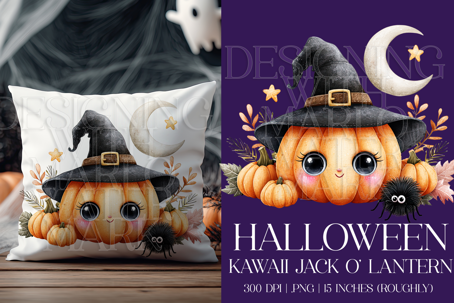 Introducing a cute design of Halloween pumpkin graphic for your printing or digital crafts. This package includes Halloween kawaii style jack o lantern scene graphic. This prints beautifully.