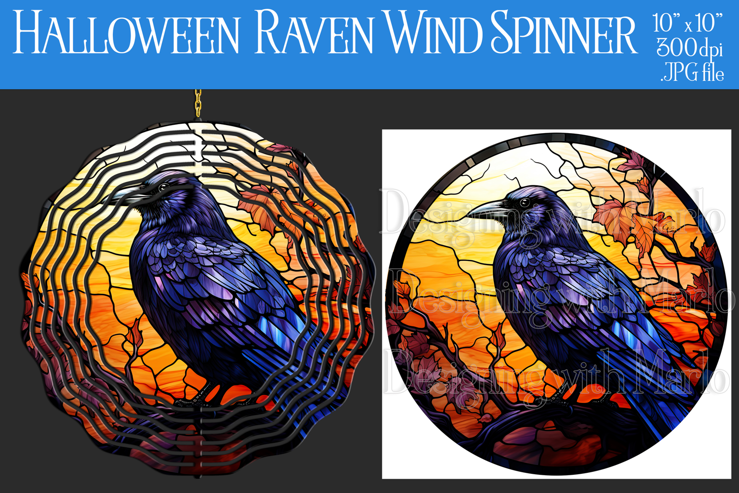 Gothic Raven Wind Spinner Sublimation Wind Spinner Halloween Wind Spinner Gothic Wind Spinner Fantasy Wind Spinner Stained Glass Wind Spinner Design Raven Wind Spinner Halloween Black Bird Black Bird Wind Spinner