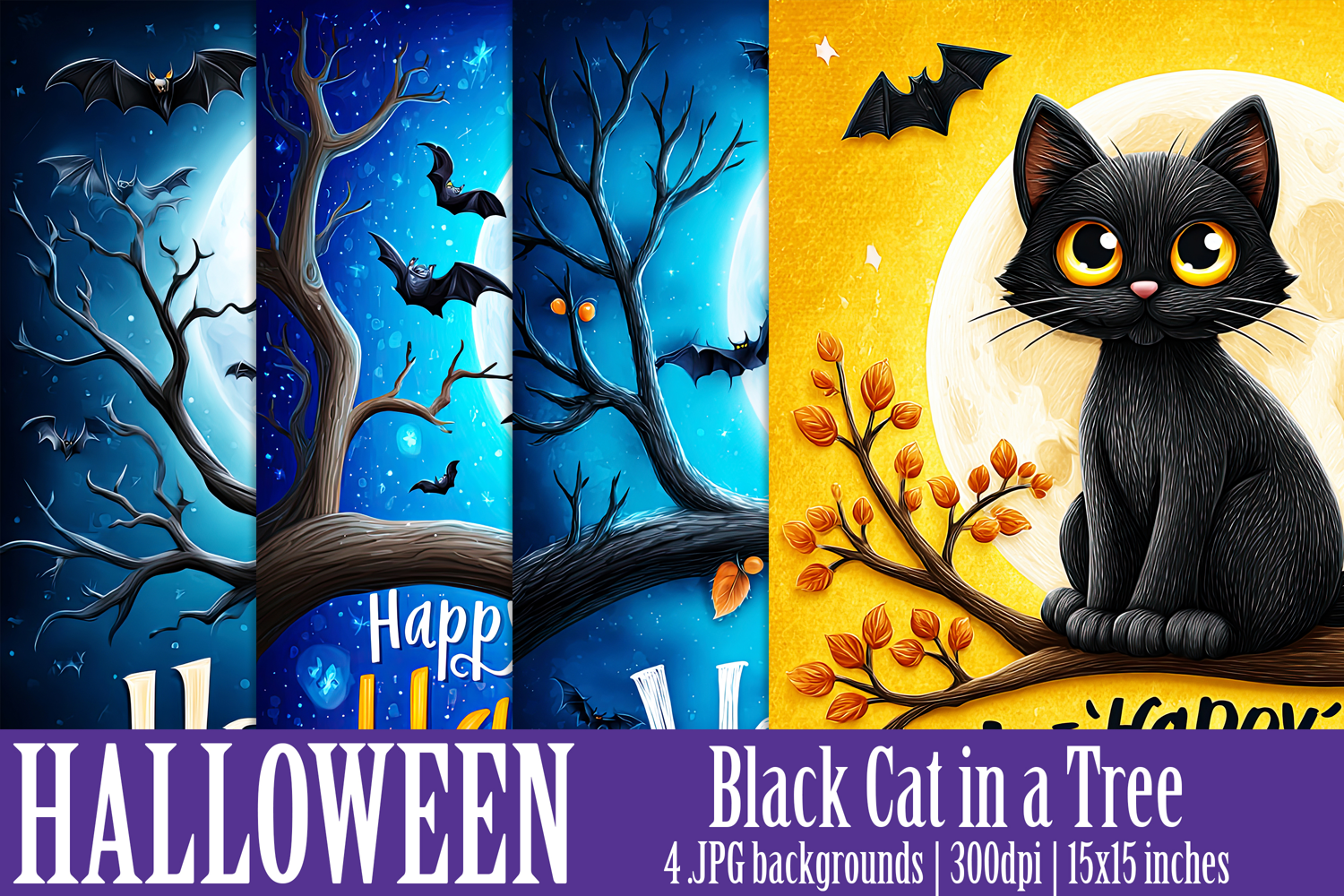 Introducing a unique package of Halloween style backgrounds for your printing or digital crafts. This package includes halloween black cat in a tree backgrounds. These print beautifully. And they create a beautiful background to use for your digital or web design projects.