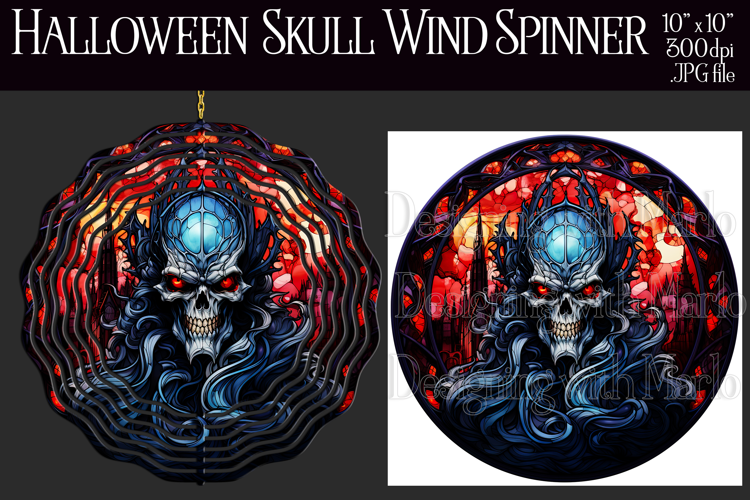 Skull Monster Halloween Monster Wind Spinner Sublimation Wind Spinner Halloween Wind Spinner Skull Wind Spinner Stained Glass Wind Spinner Design Halloween Stained Glass Wind Spinner Scary Halloween Skull