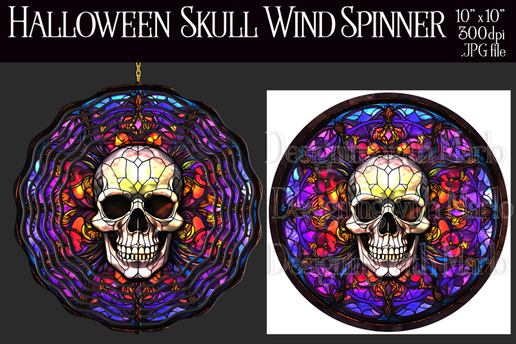 Skull Monster Halloween Monster Wind Spinner Sublimation Wind Spinner Halloween Wind Spinner Skull Wind Spinner Stained Glass Wind Spinner Design Halloween Stained Glass Wind Spinner Scary Halloween Skull
