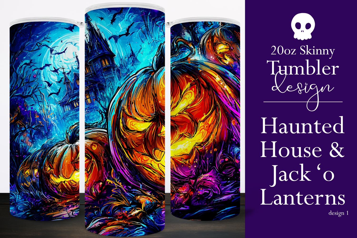 Halloween Tumbler Wrap, Haunted House, Jack o Lanterns, t1