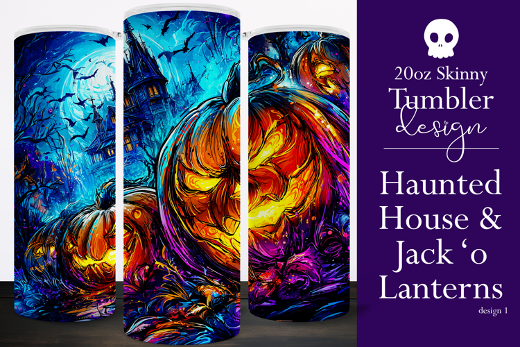 Halloween Tumbler Wrap, Haunted House, Jack o Lanterns, t1 example image 1