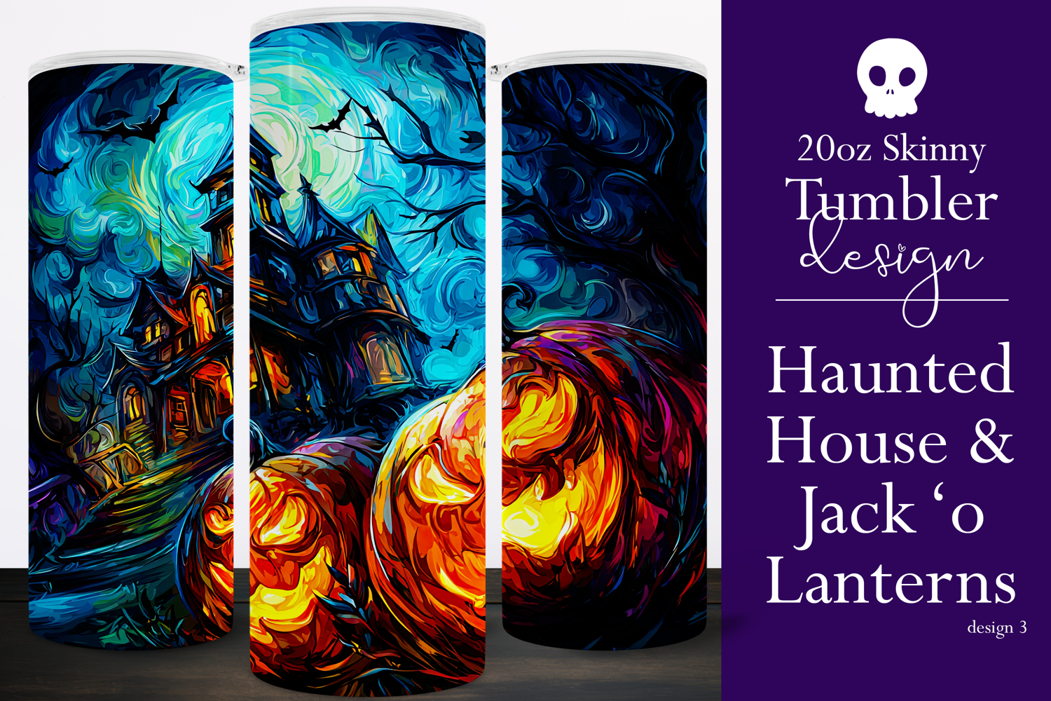 Halloween Tumbler Wrap, Haunted House, Jack o Lanterns, t3 example image 1