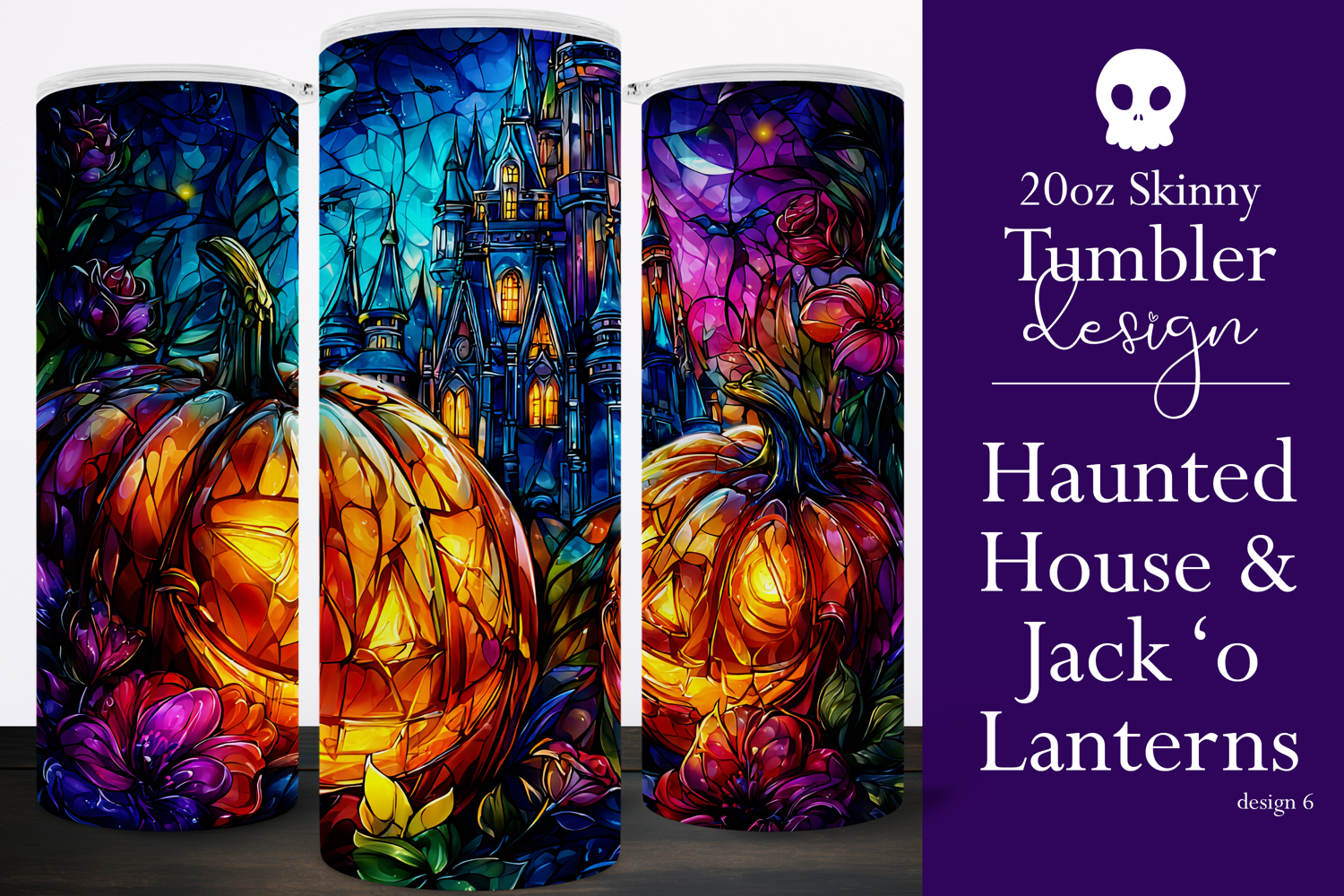 Halloween Tumbler Wrap, Haunted House, Jack o Lanterns, t6 example image 1