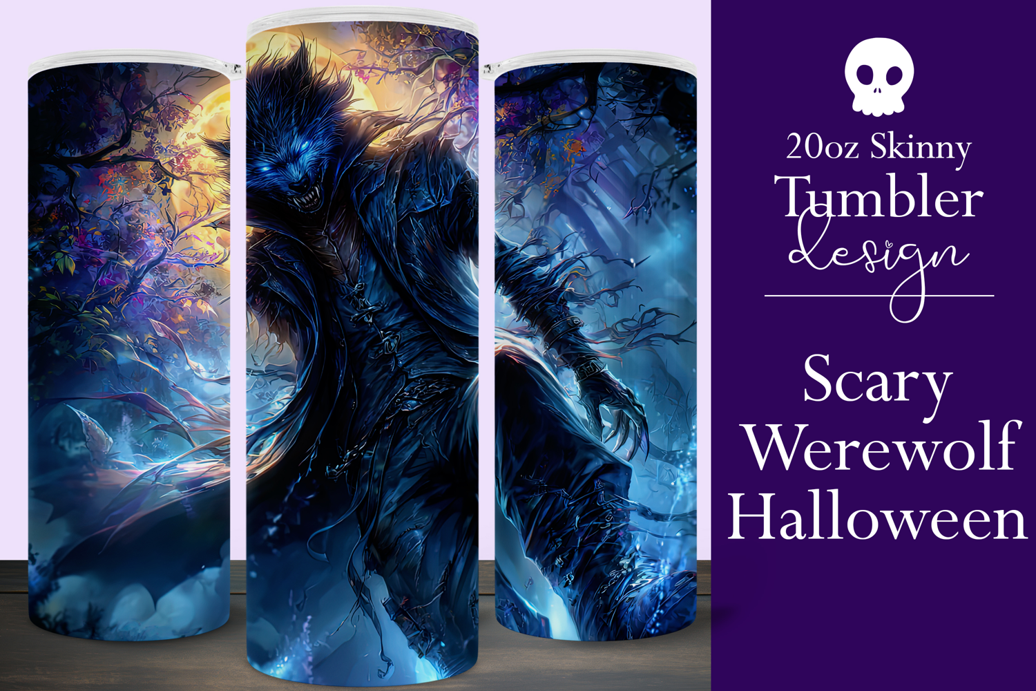 Halloween Tumbler Wrap, Halloween Scary Werewolf Tumbler, 1