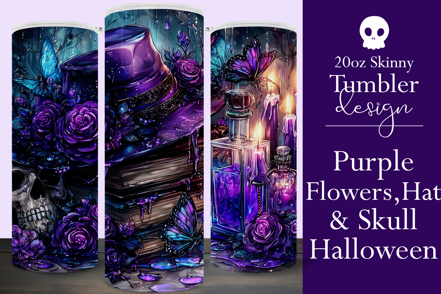Halloween Tumbler Wrap, Hat, Flowers, Skull Tumbler Wrap, t4 example image 1
