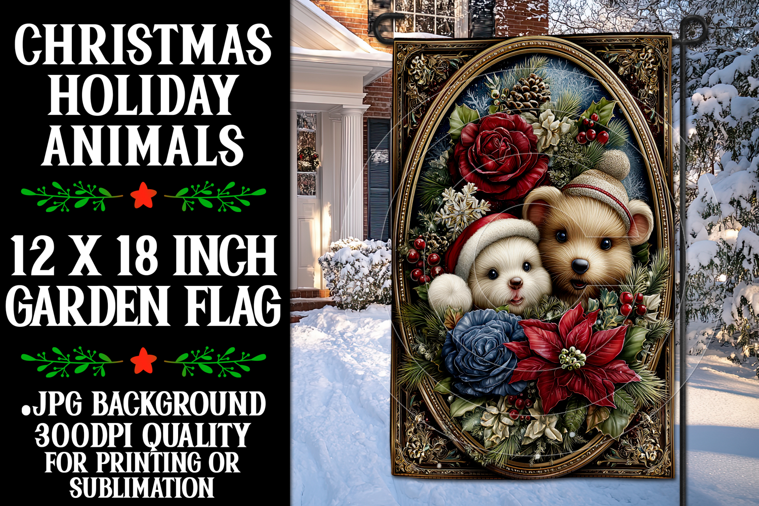 In this listing, you will find a unique christmas digital background for a 12x18 garden flag. This flag design is perfect for sublimating on garden flag blanks. This design is sure to add a touch of christmas style to any garden.