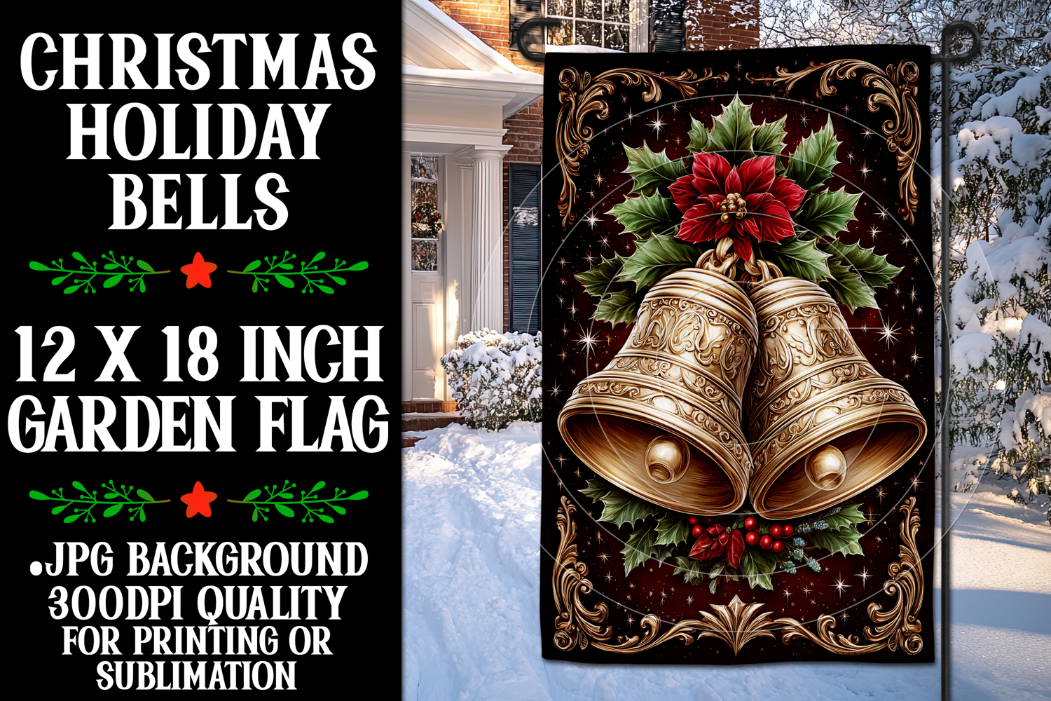 Christmas Christmas Card Christmas Bell Christmas Bells Holiday Bells Sublimation Christmas Christmas Garden Flag Golden Bell Sublimation Garden Flag Holiday Golden Bell