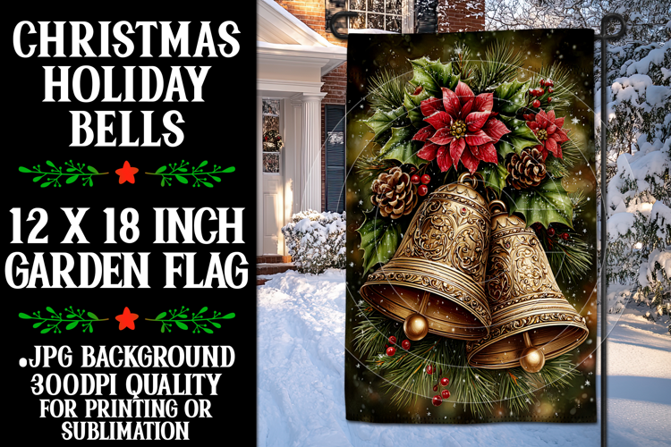 Christmas Christmas Card Christmas Bell Christmas Bells Holiday Bells Sublimation Christmas Christmas Garden Flag Golden Bell Sublimation Garden Flag Holiday Golden Bell