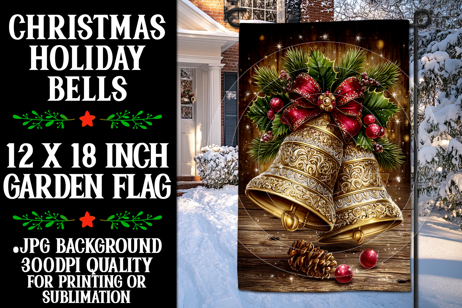 Christmas Christmas Card Christmas Bell Christmas Bells Holiday Bells Sublimation Christmas Christmas Garden Flag Golden Bell Sublimation Garden Flag Holiday Golden Bell
