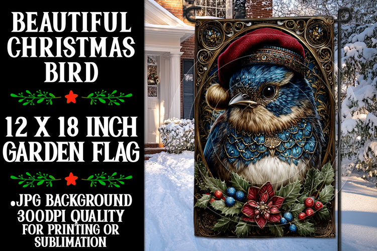 Christmas Garden Flag, Christmas Bird Garden Flag, d22 example image 1