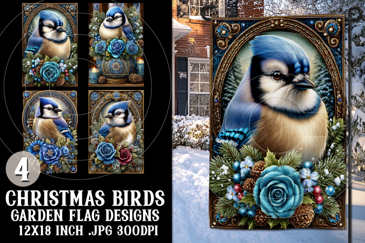 Christmas Christmas Card Blue Jay Cardinal Blue Bird Sublimation Christmas Winter Bird Christmas Garden Flag Sublimation Garden Flag Cardinal Garden Flag
