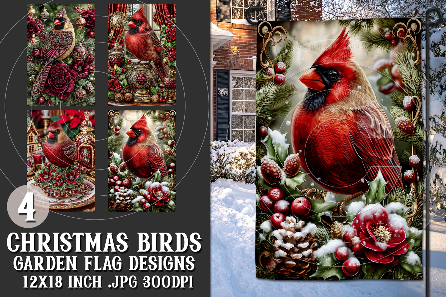 Christmas Garden Flag, Christmas Bird Garden Flags, s6 example image 1