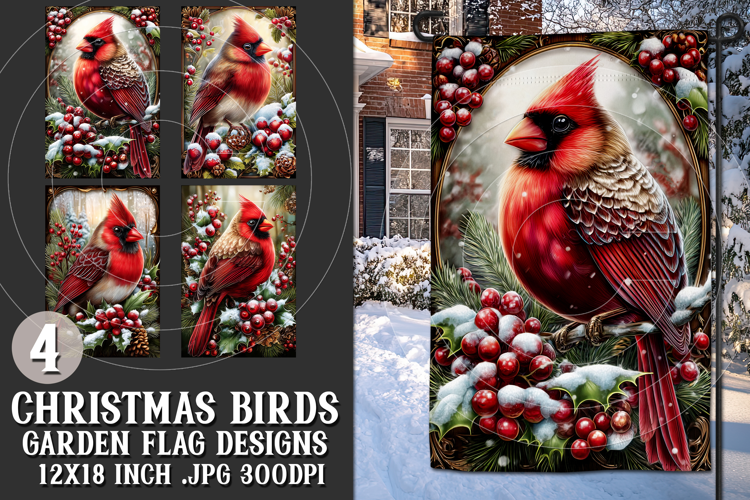 Christmas Garden Flag, Christmas Bird Garden Flags, s7 example image 1