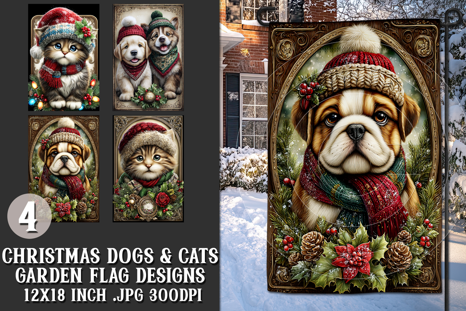Christmas Garden Flag, Christmas Dog Cat Garden Flags, s2