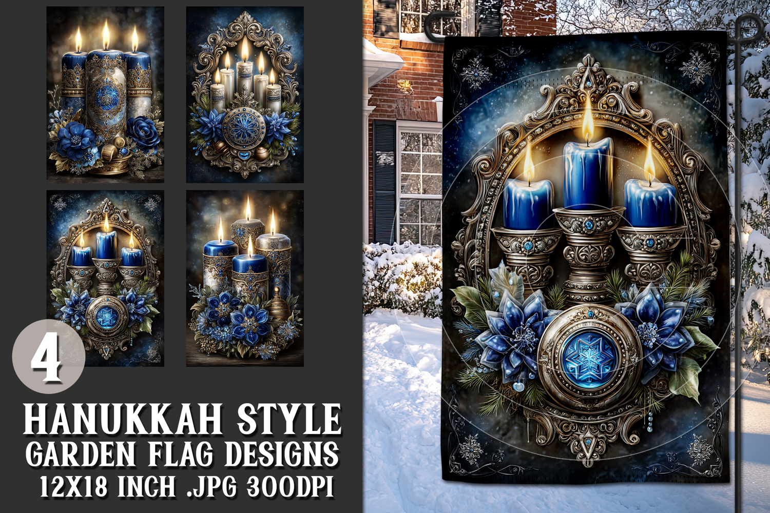 In this listing, you will find a unique Hanukkah digital background for a 12x18 garden flag. This flag design is perfect for sublimating on garden flag blanks. This design is sure to add a touch of christmas style to any garden.