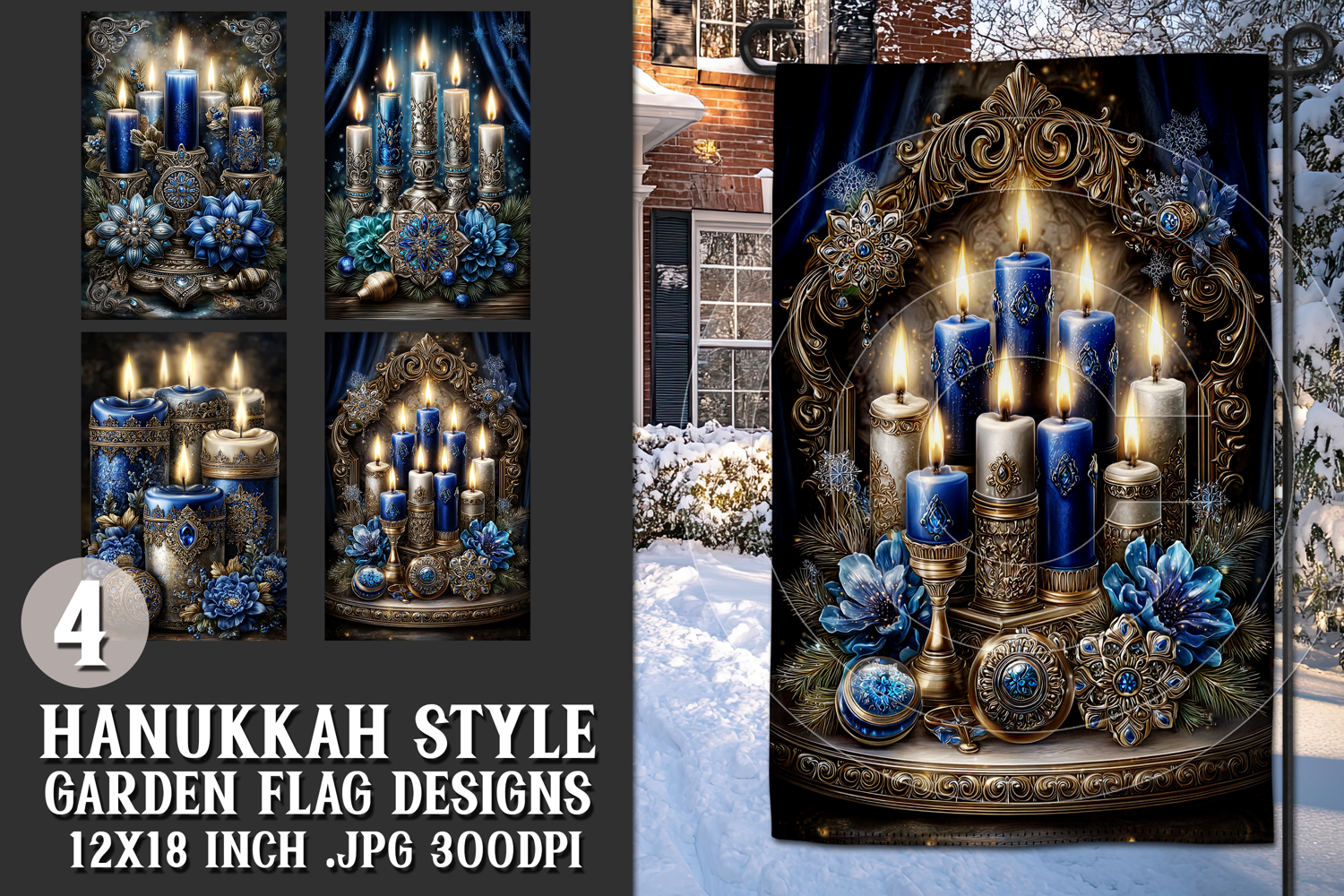 In this listing, you will find a unique Hanukkah digital background for a 12x18 garden flag. This flag design is perfect for sublimating on garden flag blanks. This design is sure to add a touch of christmas style to any garden.