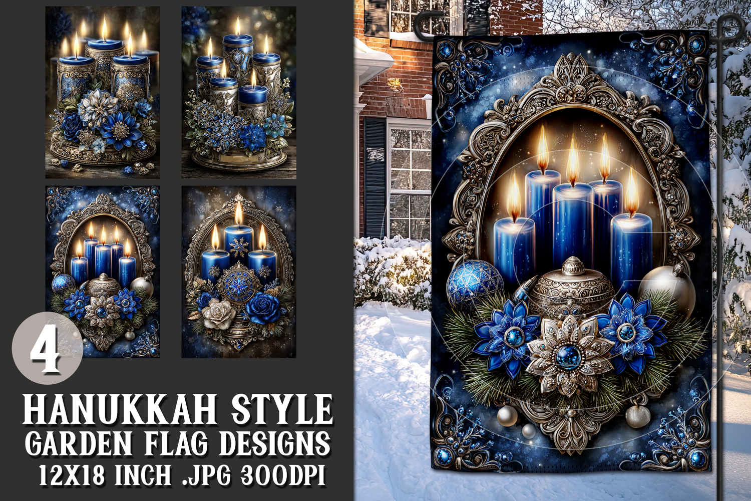 In this listing, you will find a unique Hanukkah digital background for a 12x18 garden flag. This flag design is perfect for sublimating on garden flag blanks. This design is sure to add a touch of christmas style to any garden.