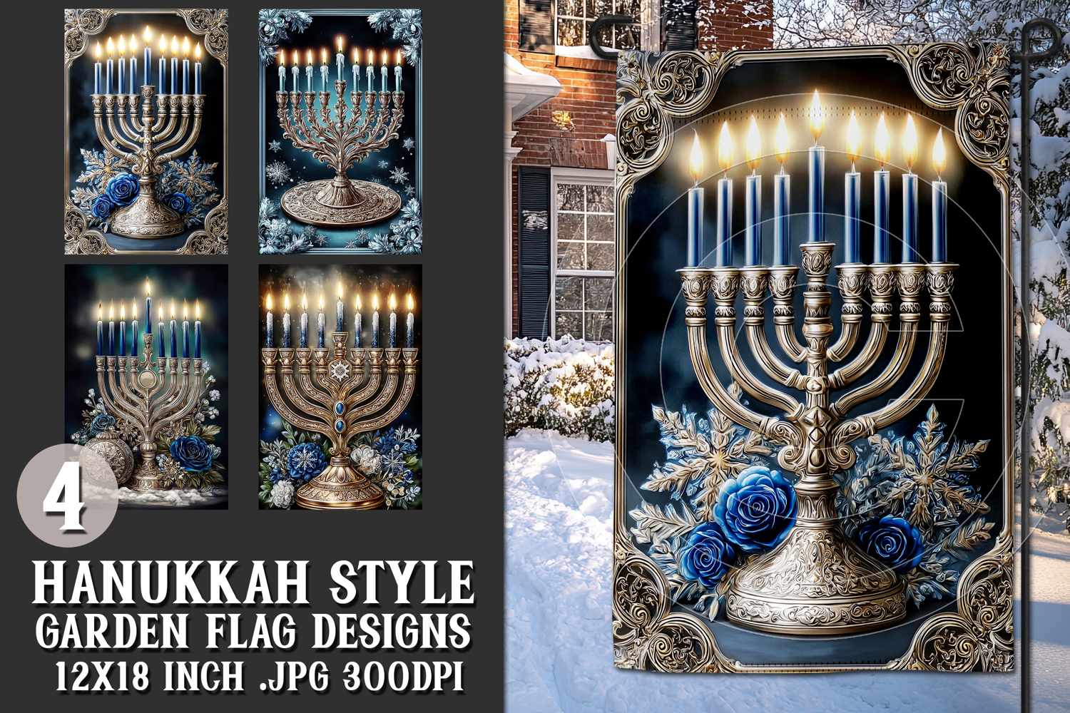 In this listing, you will find a unique Hanukkah digital background for a 12x18 garden flag. This flag design is perfect for sublimating on garden flag blanks. This design is sure to add a touch of christmas style to any garden.