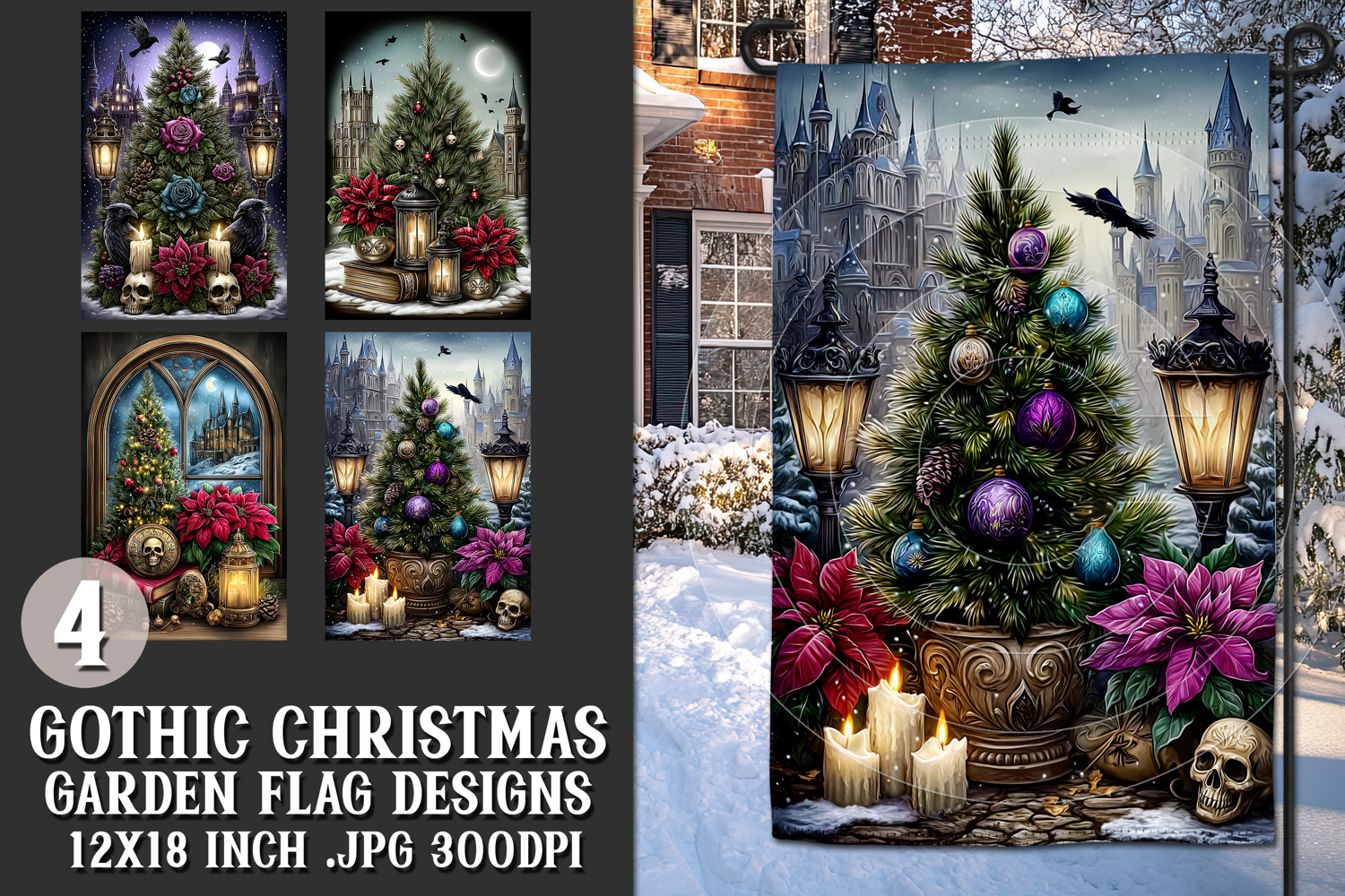 Gothic Christmas Garden Flag, Gothic Garden Flag Design, s6