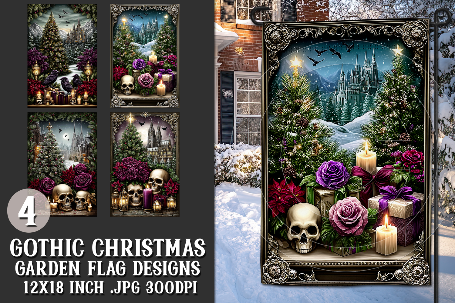 In this listing, you will find a unique gothic christmas digital background for a 12x18 garden flag. This flag design is perfect for sublimating on garden flag blanks. This design is sure to add a touch of holidays style to any garden.