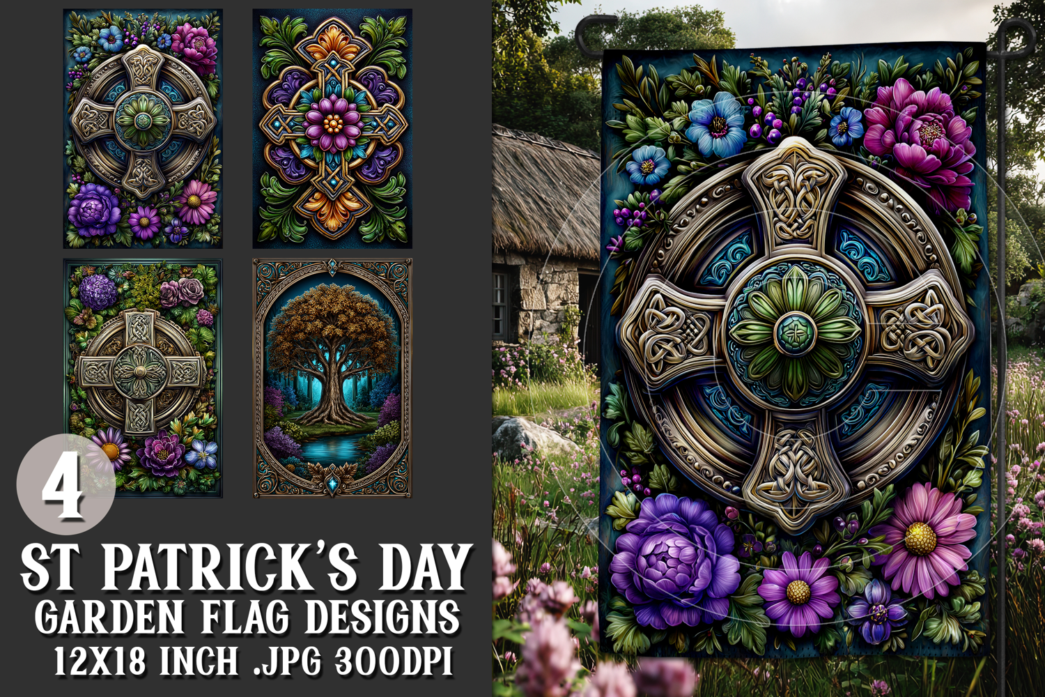 In this listing, you will find a unique st patrick's day celtic irish themed digital background for a 12x18 garden flag. This flag design is perfect for sublimating on garden flag blanks. This design is sure to add a touch of irish style to any garden.