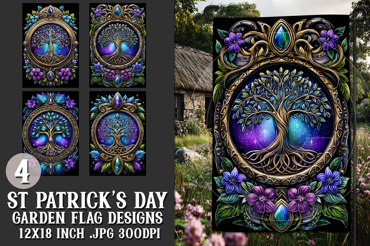 In this listing, you will find a unique st patrick's day celtic irish themed digital background for a 12x18 garden flag. This flag design is perfect for sublimating on garden flag blanks. This design is sure to add a touch of irish style to any garden.