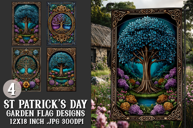 In this listing, you will find a unique st patrick's day celtic irish themed digital background for a 12x18 garden flag. This flag design is perfect for sublimating on garden flag blanks. This design is sure to add a touch of irish style to any garden.