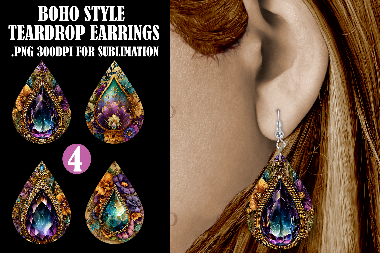 • 4 .PNG teardrop earring designs, 300dpi print quality {1.4 x 2 inches in size - 404 x 570 pixels in size}