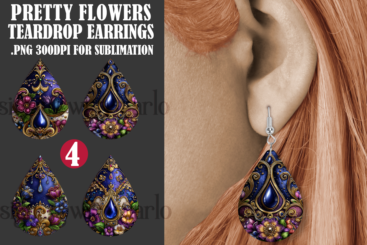 • 4 .PNG teardrop earring designs, 300dpi print quality {1.4 x 2 inches in size - 404 x 570 pixels in size}