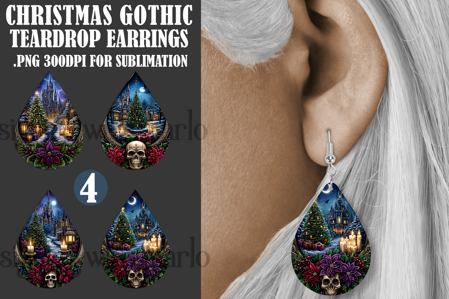 Christmas Teardrop Earring, Gothic Christmas Designs, s7 example image 1