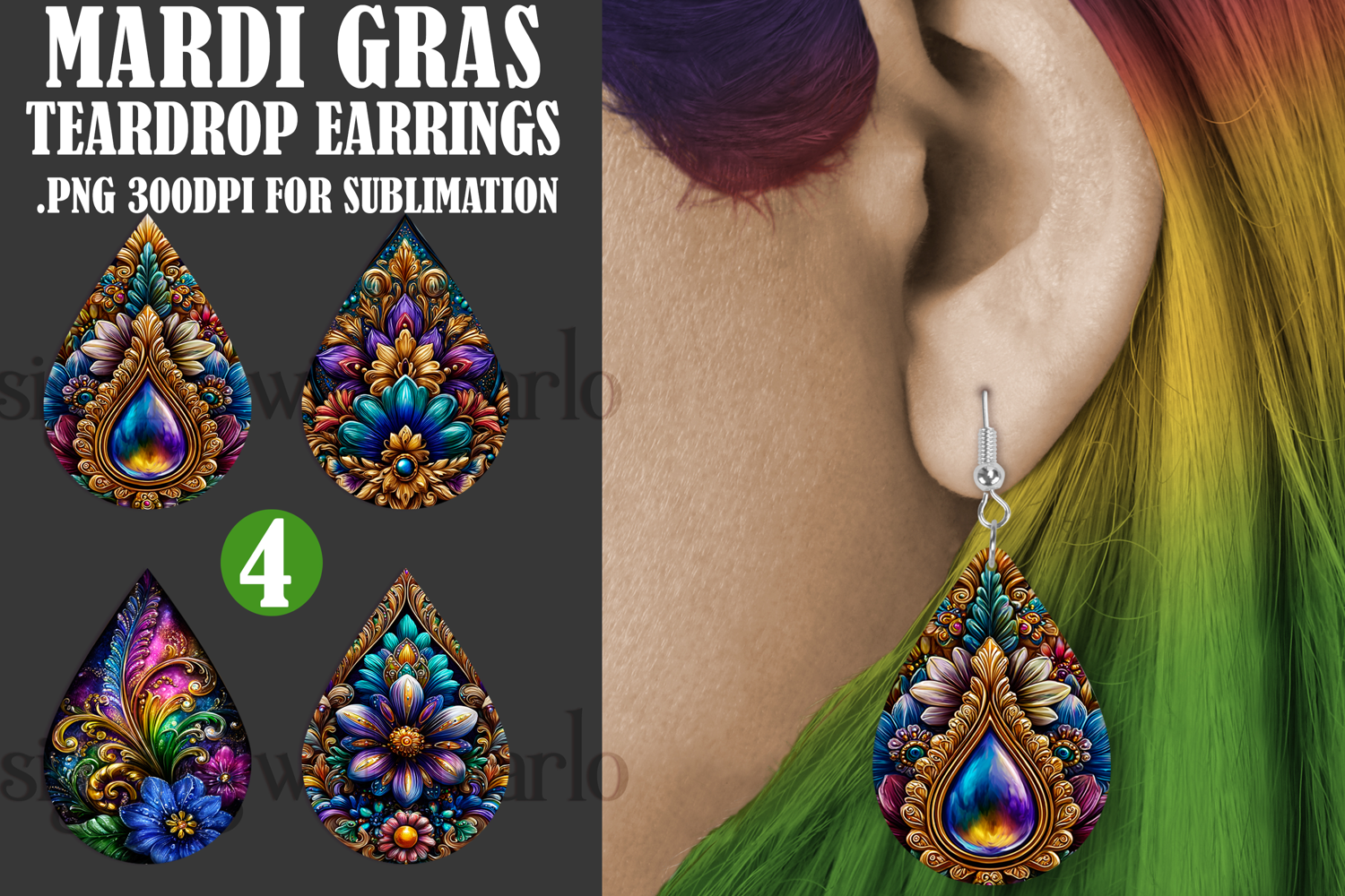• 4 .PNG teardrop earring designs, 300dpi print quality {1.4 x 2 inches in size - 404 x 570 pixels in size}