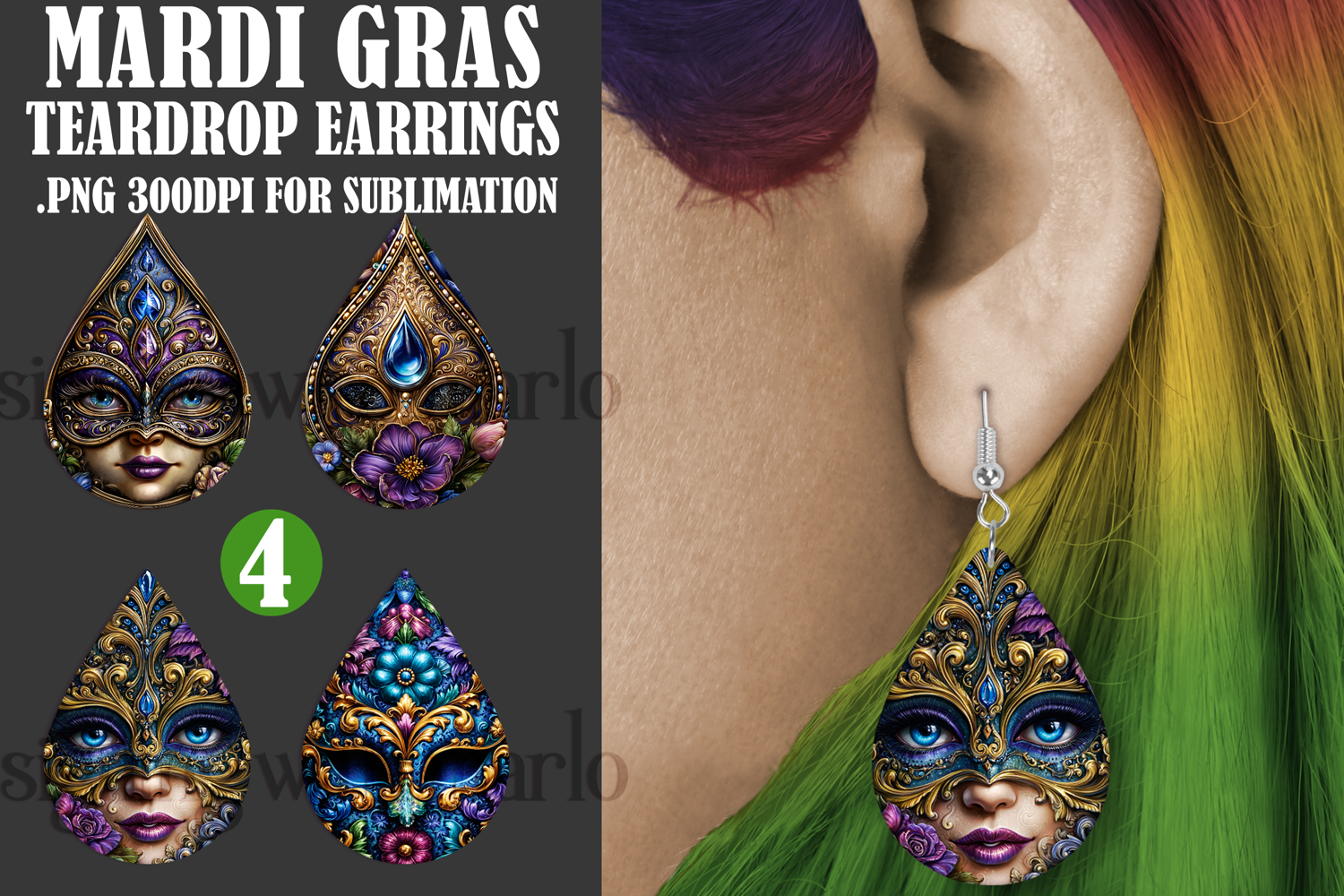 Mardi Gras New Orleans Carnival Mask Teardrop Earring Earring Design Sublimation Earring Sublimation Carnival Carnival Earring Mardi Gras Sublimation Earrings Design Sublimation Mardi Gras Earring