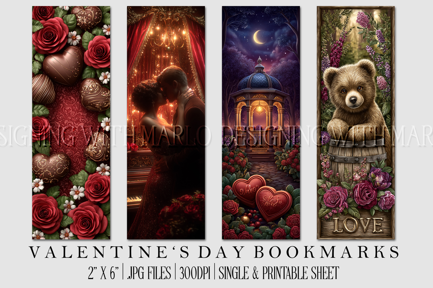 Introducing a unique package of pretty, Valentine's Day bookmarks for printing or digital crafts. This package includes unique and pretty bookmarks. These print beautifully. And they create a beautiful gift for you or for someone to give to.