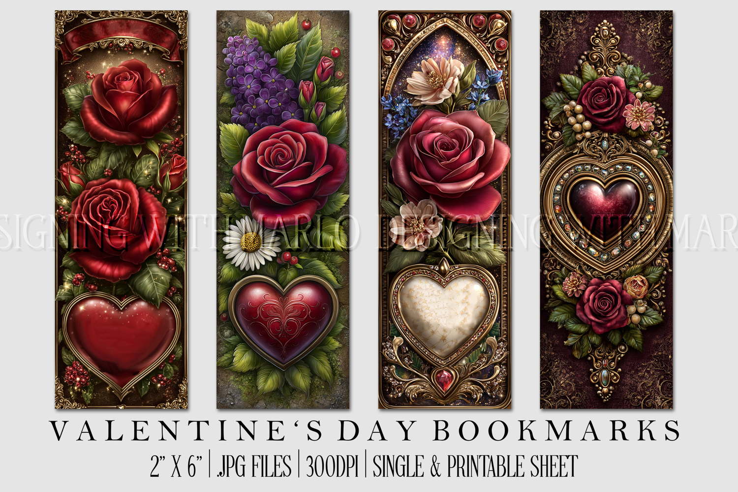 Introducing a unique package of pretty, Valentine's Day bookmarks for printing or digital crafts. This package includes unique and pretty bookmarks. These print beautifully. And they create a beautiful gift for you or for someone to give to.