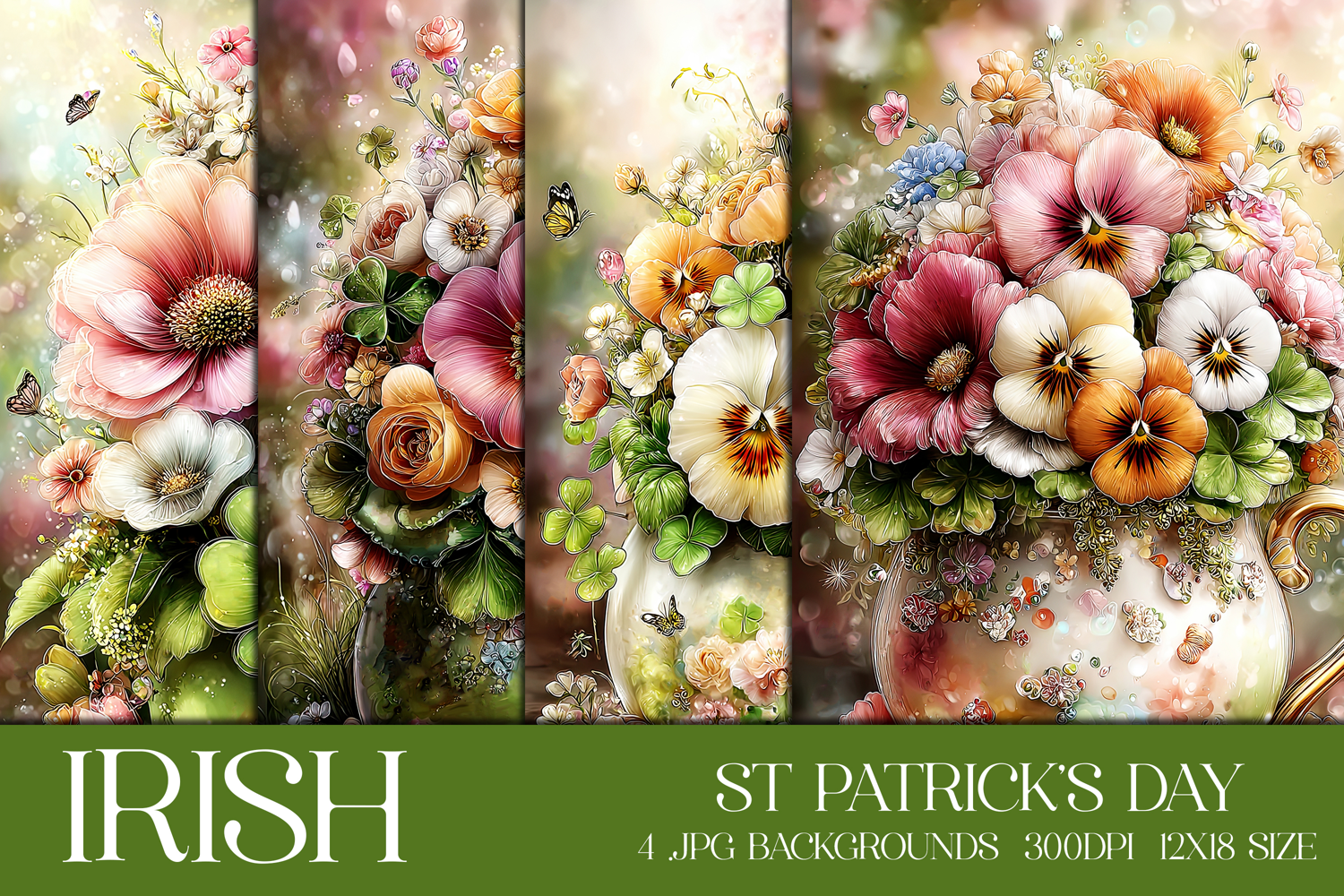 Introducing a unique package of st patrick's day backgrounds for your printing or digital crafts. This package includes beautiful irish style backgrounds. These print beautifully. And they create a beautiful background to use for your digital or web design projects.