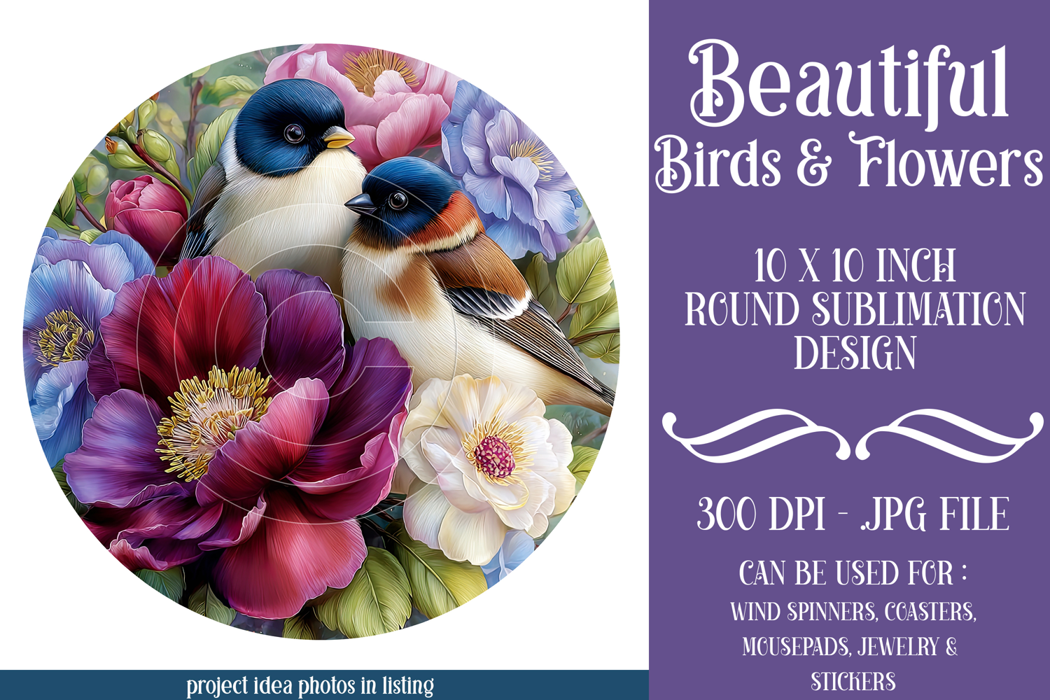 Birds & Flowers Round Design, 10x10 Round Sublimation, d4 example image 1