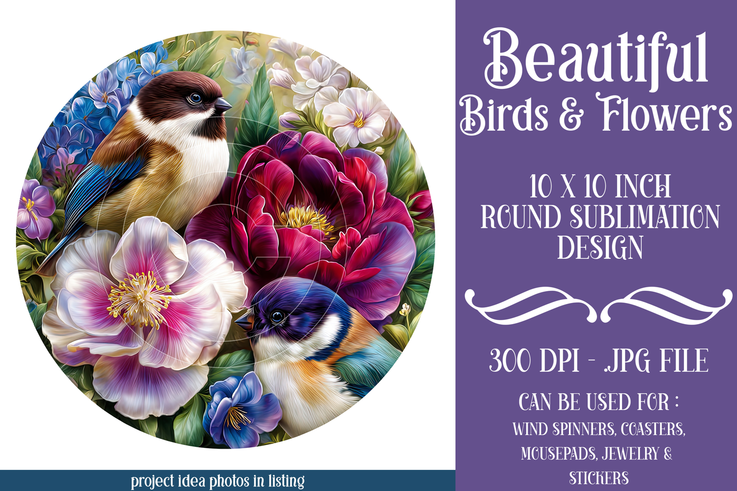 Birds & Flowers Round Design, 10x10 Round Sublimation, d5 example image 1