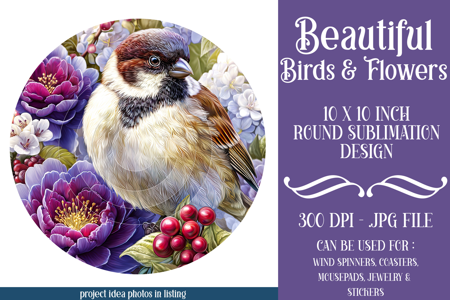 Birds & Flowers Round Design, 10x10 Round Sublimation, d11 example image 1