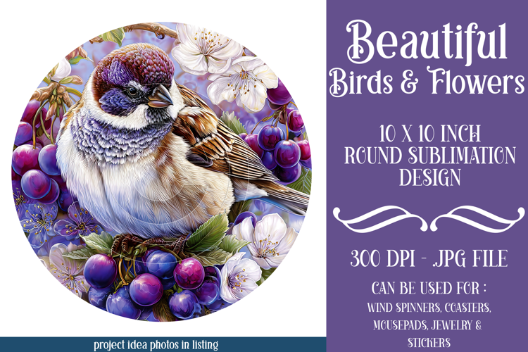 Birds & Flowers Round Design, 10x10 Round Sublimation, d21 example image 1